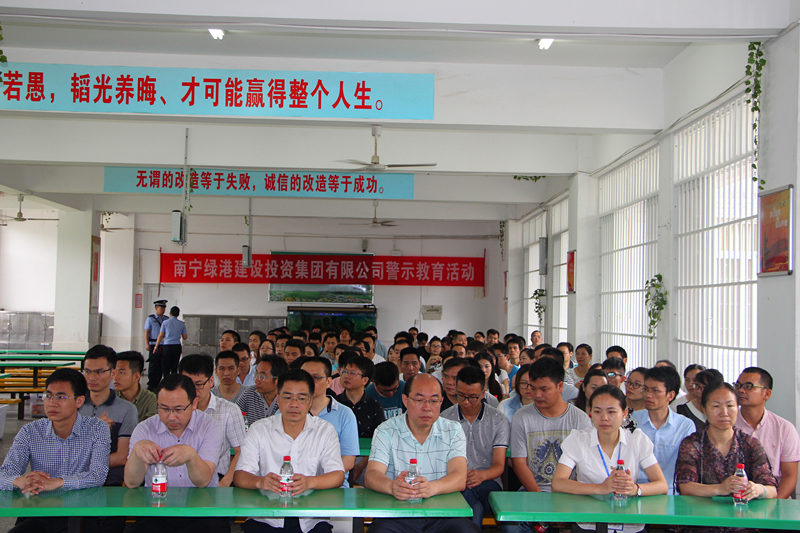 為提高全體員工的廉潔自律和預防職務犯罪意識,在公司營造反腐倡廉的良好風氣,教育全體員工珍惜來之不易的工作崗位,自覺筑起拒腐防變的心理防線,促進黨風廉政建設工作的深入開展。5月10日和5月26日,經開區紀工委派駐國有公司紀檢組李云岳組長及綠港集團全體員工分3批次赴南寧監獄開展廉政警示教育參加了此次活動。全體員工通過實地參觀南寧監獄監區、現場聽服刑人員懺悔報告等形式,接受了一次深刻的警示教育。