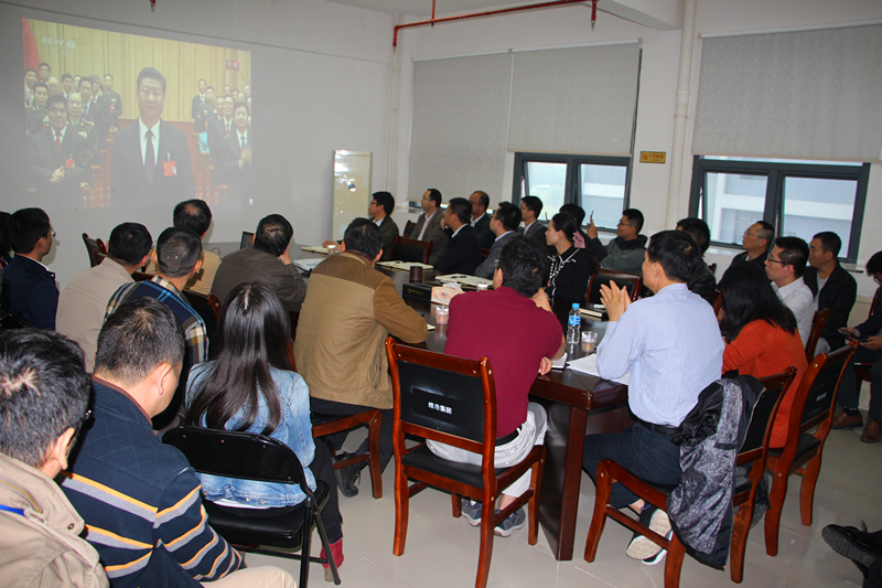 金秋十月,南國綠城花正艷。10月18日,黨的十九大在北京勝利開幕。當日上午9時,綠港集團黨委組織集團公司領導班子全體成員、董事長助理、總經理助理,各部門、各子公司負責人及公司全體黨員,在麗匯大廈415會議室集中收看中國共產黨第十九次全國代表大會開幕會直播盛況。全體與會人員懷著無比激動的心情,聚精會神,靜靜聆聽,認真記錄,不時爆發出熱烈的掌聲!在長達三個半小時的收看過程中,整個會場始終保持莊嚴、肅穆、緊張、熱烈的良好氛圍。