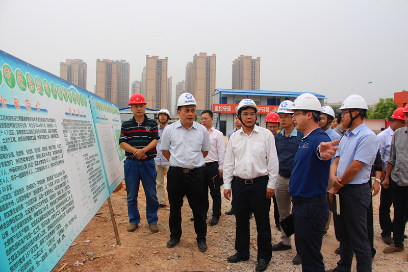 在那洪溝街頭綠地及生態水處理配套工程項目現場,何尚漢書記認真聽取了綠港集團董事長、總經理龔國強作的項目進展情況匯報,并對綠港集團所做的工作和取得成績表示充分肯定,勉勵建設者們繼續發揚綠港集團鐵軍的精神,克難攻堅,加快推進項目建設,展現“綠港鐵軍”速度。
