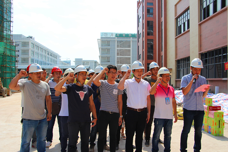 當(dāng)天,驕陽似火。綠港集團(tuán)黨委書記、董事長、總經(jīng)理龔國強(qiáng)莊重地給黨員們授予“黨員先鋒隊”紅旗,給青年突擊隊員們授予“青年突擊隊”紅旗,并提出了幾點要求:一是要緊緊圍繞項目建設(shè)開展突擊活動。全體黨員干部和青年同志要充分發(fā)揚(yáng)不怕吃苦、勇于負(fù)重,敢打硬仗、能打硬仗的優(yōu)良傳統(tǒng),切實發(fā)揮“黨員先鋒隊”、“青年突擊隊”在“急、難、險、重”任務(wù)中的生力軍作用。二是要把項目建設(shè)與錘煉黨員意志相結(jié)合。黨員干部和青年同志們要充分發(fā)揮模范帶頭作用,深入項目一線,了解項目建設(shè)困難,想方設(shè)法協(xié)調(diào)解決。要在項目建設(shè)中增強(qiáng)本領(lǐng)、錘煉意志、增強(qiáng)黨性,更好的服務(wù)入?yún)^(qū)企業(yè)建設(shè)發(fā)展。三是要充分發(fā)揮“黨建帶團(tuán)建”作用。“黨員先鋒隊”要引導(dǎo)和指導(dǎo)好“青年突擊隊”開展好項目建設(shè),黨員干部與青年同志們要相互關(guān)心,密切配合,充分發(fā)揮整體功能和團(tuán)隊精神,確保瑞聲廠房項目能在6月25日完工交付9號廠房、7月25日完工交付3、13號廠房的任務(wù)目標(biāo)。