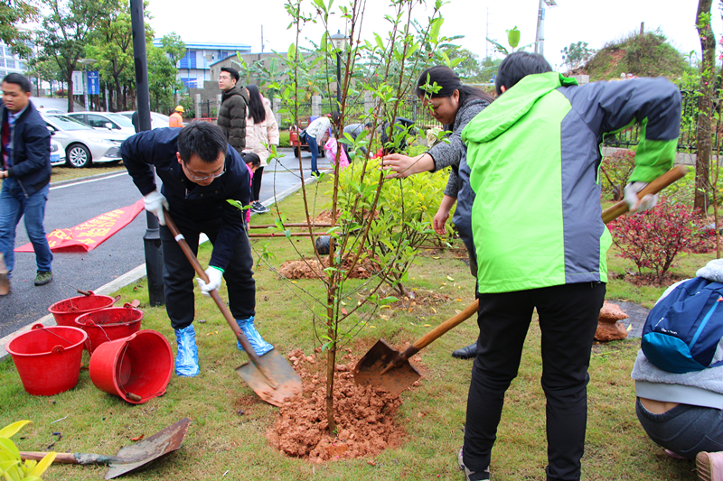 綠港集團(tuán)董事長(zhǎng)龔國(guó)強(qiáng)帶領(lǐng)職工們開展植樹護(hù)綠行動(dòng)