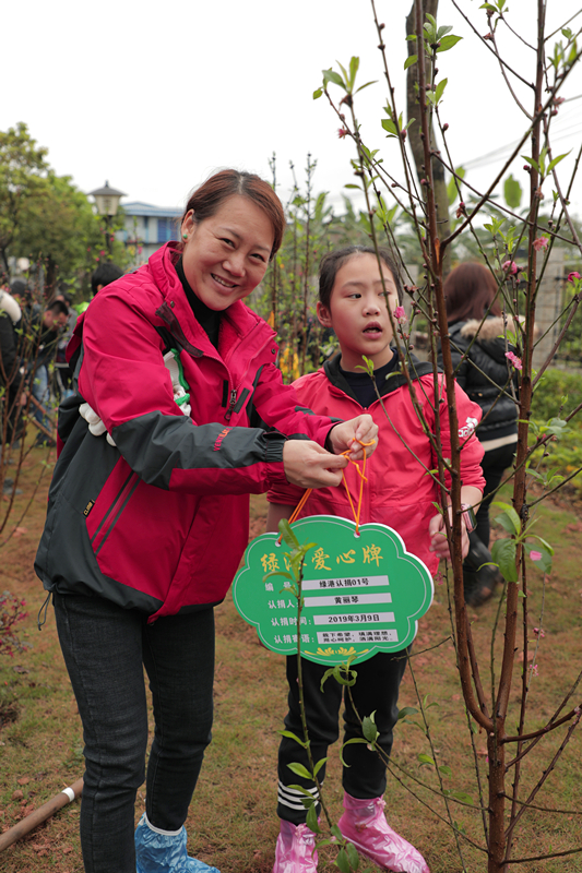 當(dāng)天,綠港集團(tuán)還舉行了植樹護(hù)綠活動(dòng)。在細(xì)雨紛飛中,家長(zhǎng)和孩子們一起動(dòng)手,分工協(xié)作。大家栽得認(rèn)真,干得賣力,揮鍬鏟土、挖坑、栽樹、蓋土、澆水,各個(gè)環(huán)節(jié)銜接有序,配合默契。整個(gè)植樹活動(dòng)現(xiàn)場(chǎng)熱火朝天,歡聲笑語(yǔ)不絕于耳。經(jīng)過一個(gè)多小時(shí)的揮汗奮戰(zhàn),上百棵小樹苗整齊的“站”在了綠港·國(guó)際中心桃樹林中。放眼望去,樹苗迎風(fēng)挺立、搖曳生姿,大家看著這一片自己親手種下的樹苗,無不露出幸福的笑容,紛紛與小樹苗合影。綠港集團(tuán)下屬榮鑫公司副總經(jīng)理唐欽月表示:“植樹造林是一項(xiàng)利于當(dāng)代、造福子孫的偉大工程。綠港集團(tuán)成立五年來,每年都積極組織員工開展義務(wù)植樹造林活動(dòng)。今天我們帶上孩子一起參加義務(wù)植樹活動(dòng),不僅增強(qiáng)了職工們生態(tài)環(huán)境保護(hù)的責(zé)任感,也給孩子們樹立了關(guān)心、愛護(hù)以及主動(dòng)參與家園建設(shè)的意識(shí)和榜樣?!?nbsp;