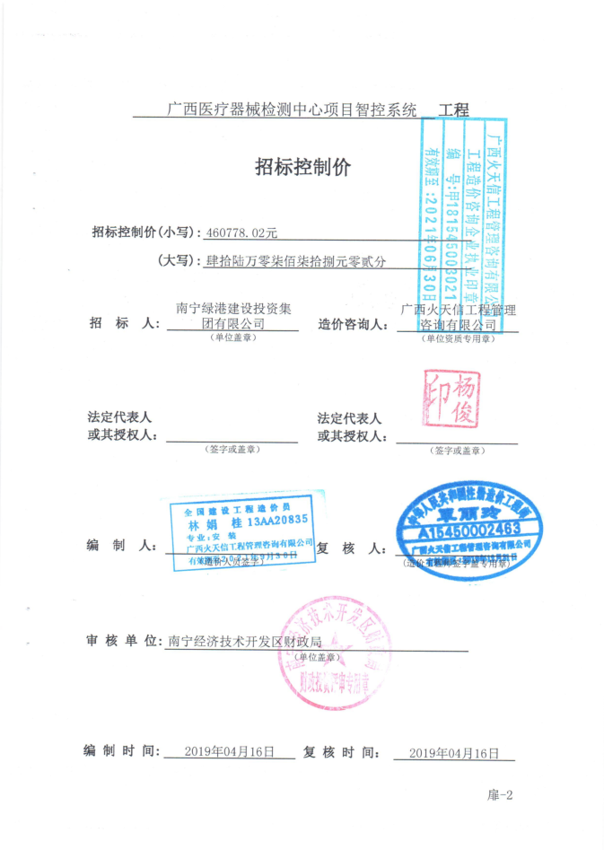 項目招標控制價:人民幣肆拾陸萬零柒佰柒拾捌元零貳分(¥460778.02元)