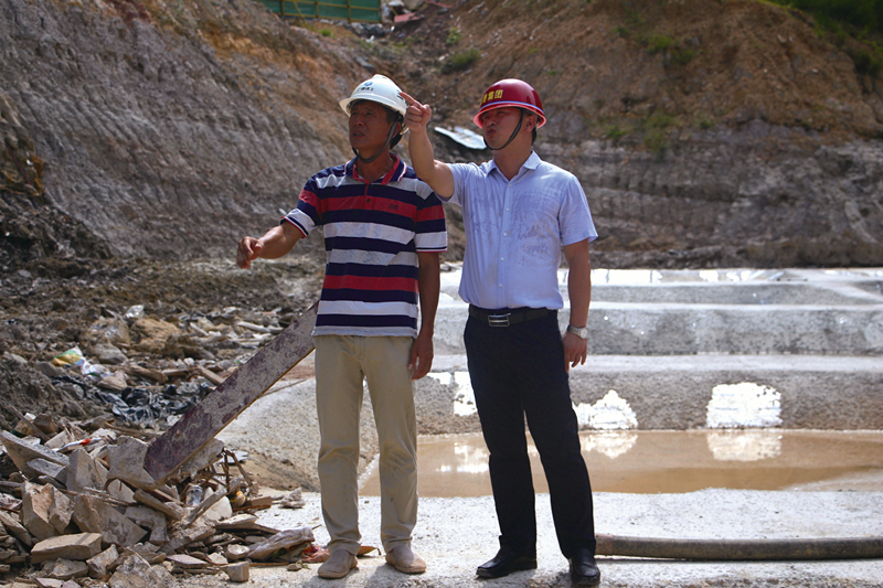 何小勇(右一)對現(xiàn)場施工進行指導(dǎo)