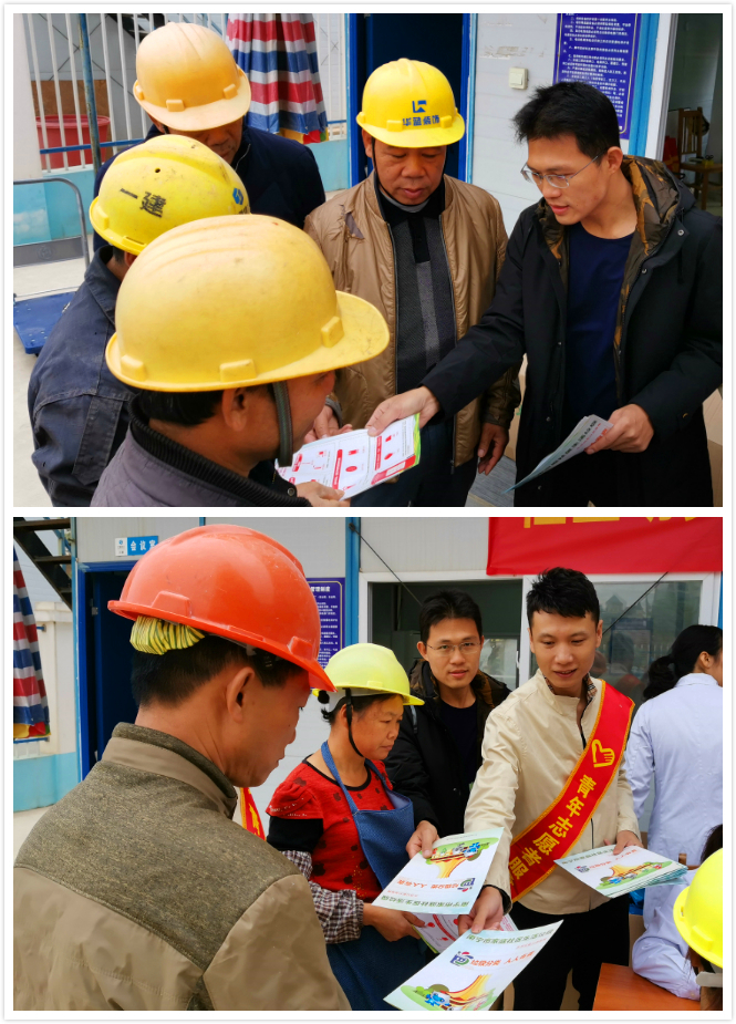 現場為農民工發放宣傳冊、藥品和避孕器具