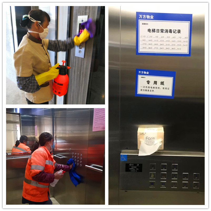 防疫物資到位后,萬方公司于1月30日及時安排人員將物資下發到各服務項目,同時在接管的綠港·國際中心、麗匯工業園、創意產業園、金凱工業園、銀凱孵化園、宏象工業園、現代工業園、吳圩新港家園等10余個項目全面開展疫情防控工作。由各項目主任帶頭領導,多措并舉防控疫情。首先,對公廁、下水道、單元樓道、垃圾桶、綠植等容易滋生病菌的場所進行消毒,重點對人員接觸頻繁的電梯、公共通道的門把手、開關、按鍵、健身器材等位置進行每日1-2次的消毒滅菌工作。其次,嚴格落實園區進出人員及車輛的管理和登記,共在各園區設置定點體溫檢測10處,嚴格開展入園人員體溫檢測,并進行體溫異常人員登記,除現場進行體溫檢測外,還在萬方公眾號小程序上推送各種防疫工作溫馨提示,提醒業主注意防疫措施并配合體溫監測。再次,設置廢棄口罩回收點30個(每個園區視項目情況配2-3個點),回收廢棄口罩,防止病毒逸散。最后,深入園區,做好業主和群眾的疫情防治宣傳,在各園區共懸掛疫情防控宣傳橫幅50條,將防護知識傳播到各家各戶,降低恐慌,為共同保障園區環境奠定良好的群眾基礎。