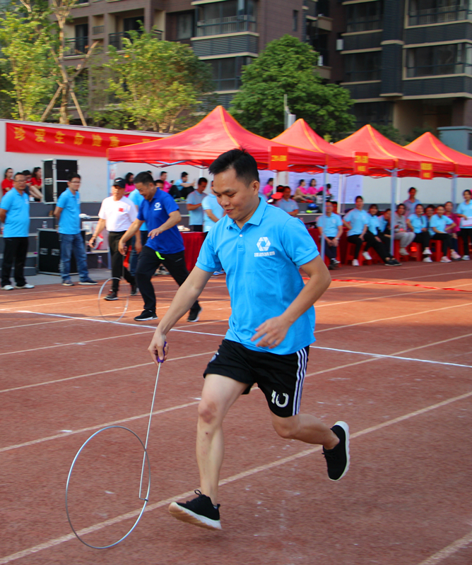 《滾鐵環(huán)》(科巨公司 盧艷芳)圖片說明:2019年綠港集團”團結(jié)杯“運動會上,職工們參加趣味項目滾鐵環(huán)