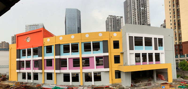 據悉,經開區實驗幼兒園作為經開區2020年一項重點民心民生工程,項目總投資1600萬元,項目包含幼兒園用房和室外活動場地及綠化用地,總占地面積5368.02m2(8.05畝),總建筑面積約為4677.35 m2,地上4層,12個班教學規模。在綠港集團的精心部署下,項目自2019年9月24日開工以來,各項工作取得較大進展。目前,該項目已完成室內貼磚與外墻涂料工作,正在進行室內衛生間潔具、吊頂、門窗、水電、消防安裝工作,力爭于2020年9月份交付使用。