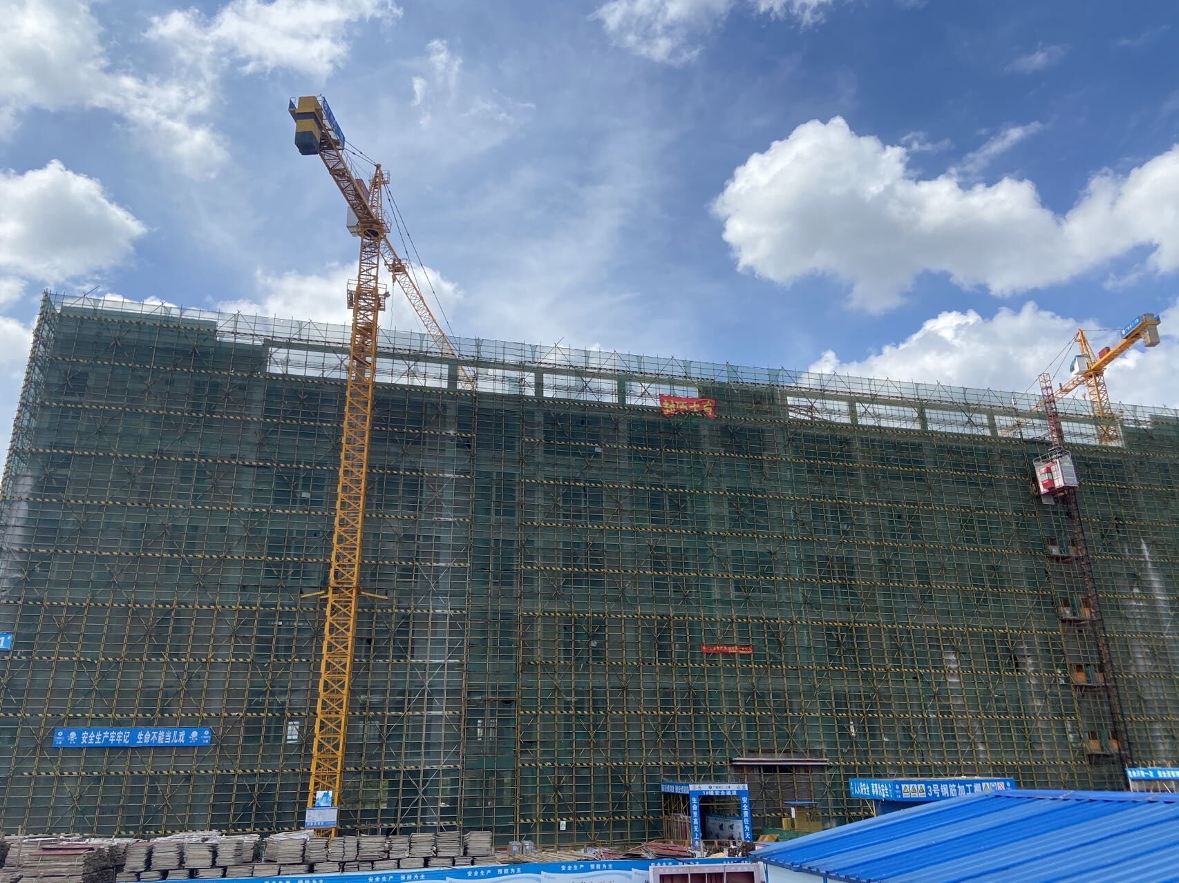 在項目施工過程中,綠港集團堅持做好項目各樓棟臨邊防護標準化、用料場地封閉標準化、設置安全宣傳長廊、裸土覆蓋措施、塔吊與道路噴淋系統、車輛沖洗系統、門禁與實名制管理系統、安全交底和特殊工種教育等工作,每周召開安全文明施工專項會議,對于安全文明月度檢查發現的安全隱患問題項目部做到高度重視,積極安排安全員專人跟蹤整改,在規定時間內按標準化要求整改完成。項目部積極開展安全演練、知識競賽、安全會議、班組活動、三級教育等活動宣傳安全生產知識,進行安全生產教育,增強建設人員安全生產意識。
